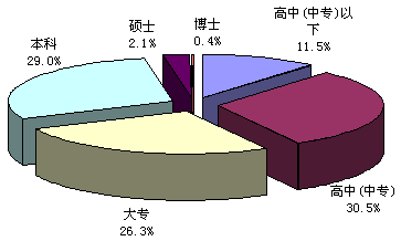 | 高中(中专)以下 | 高中(中专) | 大专 | 本科 | 硕士 | 博士 |