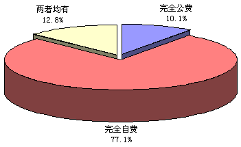 第十次CNNIC调查结果显示,77.1%的网民采用自费上网,只有10.1%的网民公费上网,公费自费均有的占12.8%(如图3-6所示)。自费仍然是网民上网费用的主要来源。