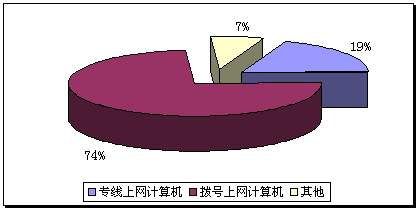 | 上网计算机总数 | 专线上网计算机数 | 拨号上网计算机数 | 其它方式上网计算机数 |
