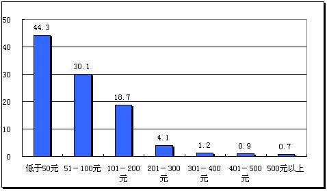图3-8 网民每月实际花费的上网费用分布(%)