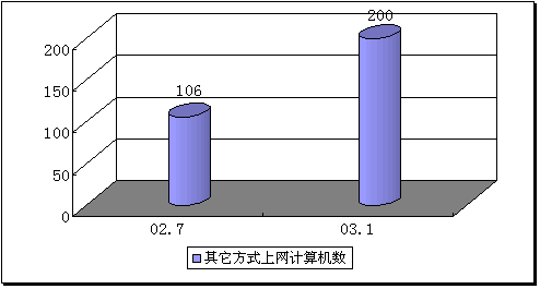 | 上网计算机总数 | 专线上网计算机数 | 拨号上网计算机数 | 其它方式上网计算机数 |