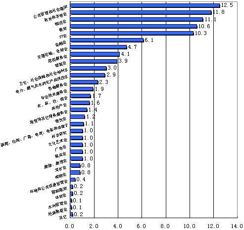 (5)、网民的行业分布(不包括军人、学生和无业人员)