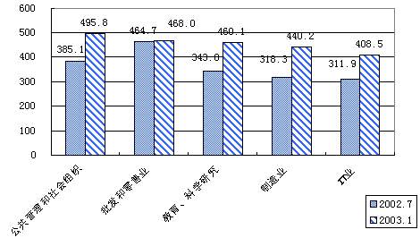 2003年网民的特征结构在现在基础上将进一步合理化,这将表现在互联网的渗透层次、渗透面更广泛和深入。2003年的网民将仍以男性、年轻人(25岁以下)、低收入(2000元以下)、未婚、低学历(大专及以下)用户为主体,但男性、未婚特征的网民比例将会有降低的趋势,而25岁以下、大专及以下、收入为500元以下(包括无收入者)以及2000元以上特征的网民所占比例将有继续上升趋势。在职业分布方面,学生仍将是一个继续增加的网民群体,但同时国家机关、党群组织工作人员、企事业单位管理人员、教师、生产运输设备操作人员等职业中将会有更多的人成为网民,该部分网民所占比例将有增长的趋势。在网民的行业分布中,公共管理和社会组织、IT业、制造业、教育等行业的网民比例将继续增长和将成为网民分布的重点行业,但同时其它行业尤其是服务行业网民的绝对数字将有继续增长。在地域分布方面,2003年将有更多尤其是沿海一带的省份的网民数超过北京、上海,同时在网民的增长幅度上沿海省份将明显高于内地省份,沿海和内地省份之间的网民数差距将拉大。
