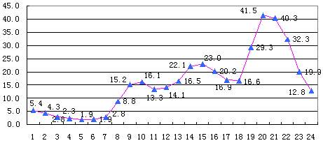 从华东、西北地区网民通常使用互联网的时间分布(如图5-9所示)可以看出,华东地区网民每天使用互联网的时间与西北地区网民每天使用互联网的时间基本类似。