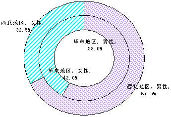 图5-1 华东、西北地区网民的性别分布