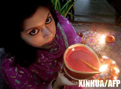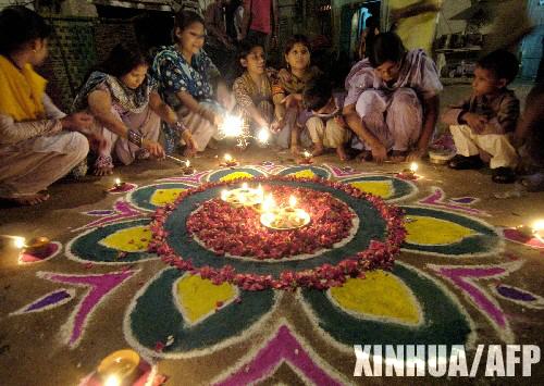 8日是印度的迪瓦利节,又称排灯节,是印度人一年中最盛大、最隆重的传统节日。夜晚的新德里,家家户户张灯结彩,喜气洋洋。除了五光十色的彩色电灯和绚丽多姿的花灯,不少人家还点上蜡烛和别具特色的小油灯。点点灯光中,人们燃放鞭炮和烟花,欢笑声不绝于耳。